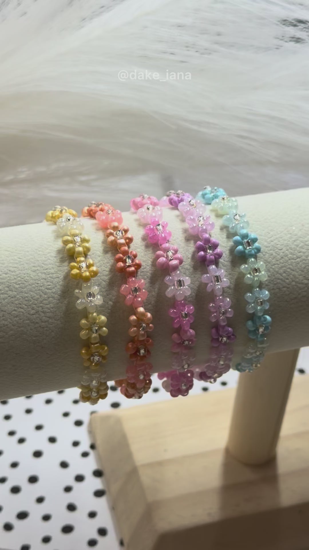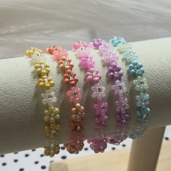 Add a delicate floral touch to your everyday look with this handmade beaded flower bracelet. Each bracelet is carefully crafted from tiny glass seed beads, forming charming daisy-style flowers that feel light, feminine, and timeless.