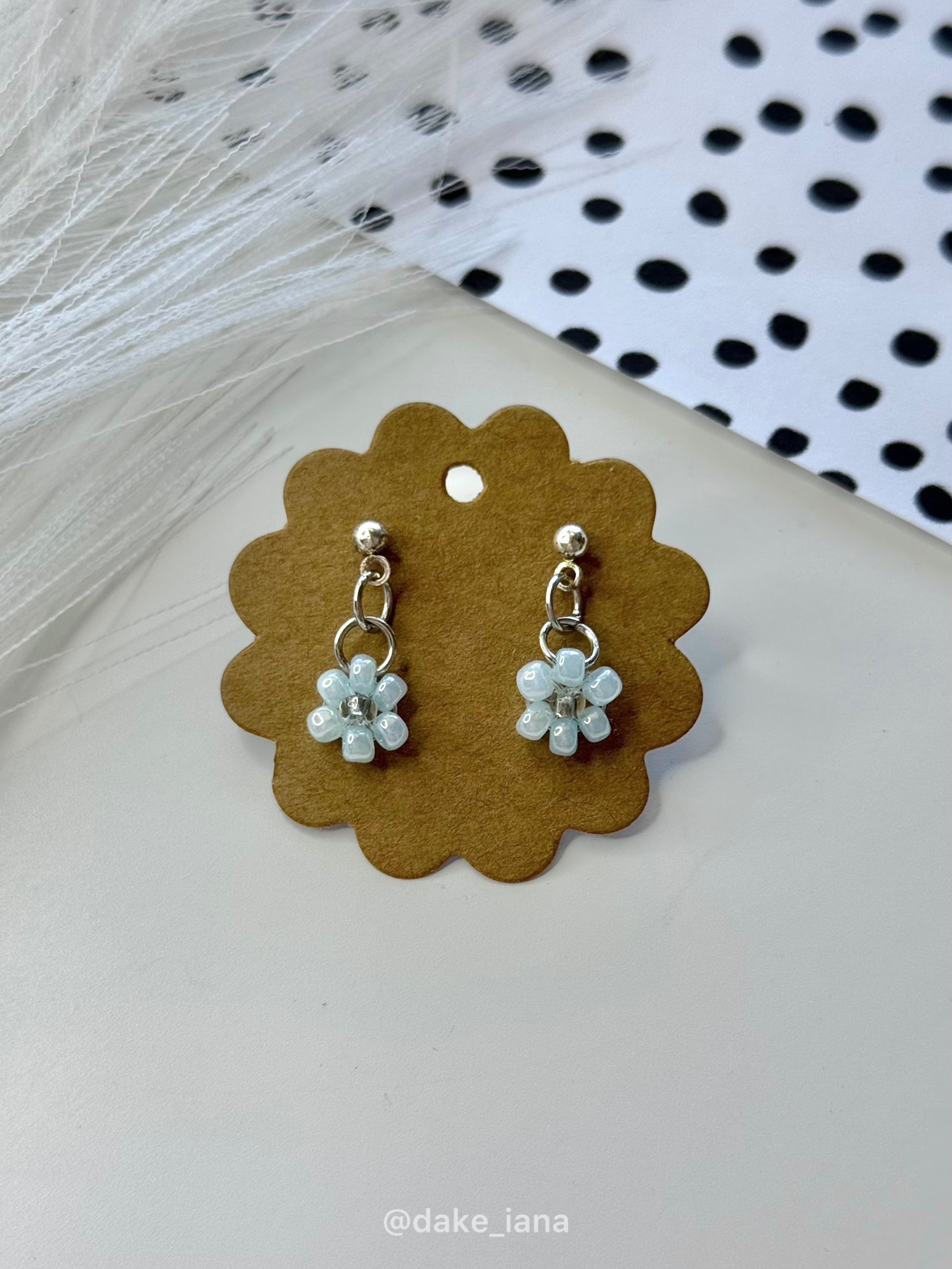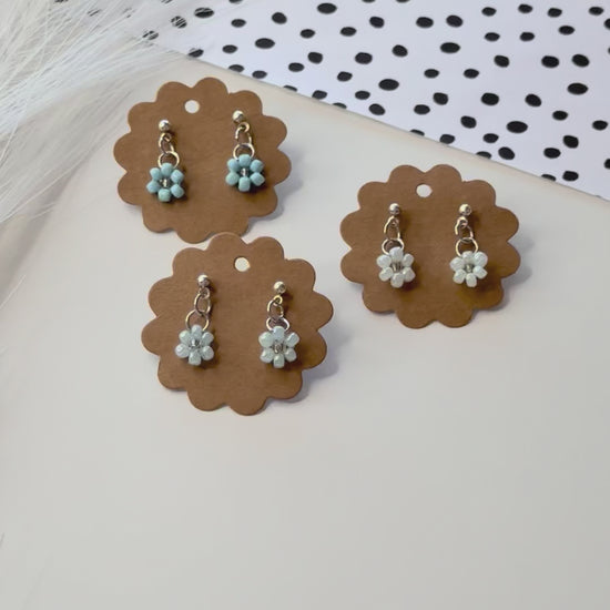 Blue Daisy Earrings Set, Beaded Flower Earrings, Minimalist Jewelry