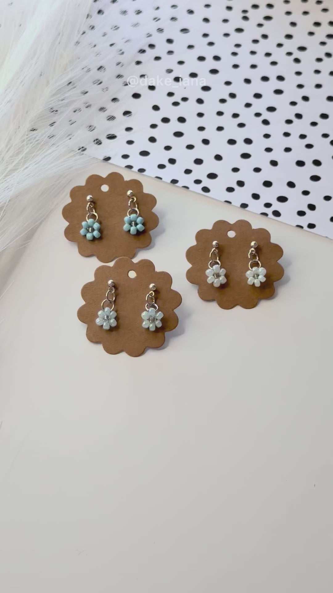 This handmade blue flower earrings set includes three pairs of beaded daisy earrings in different blue shades, perfectly matching the bracelets and necklaces from this collection.