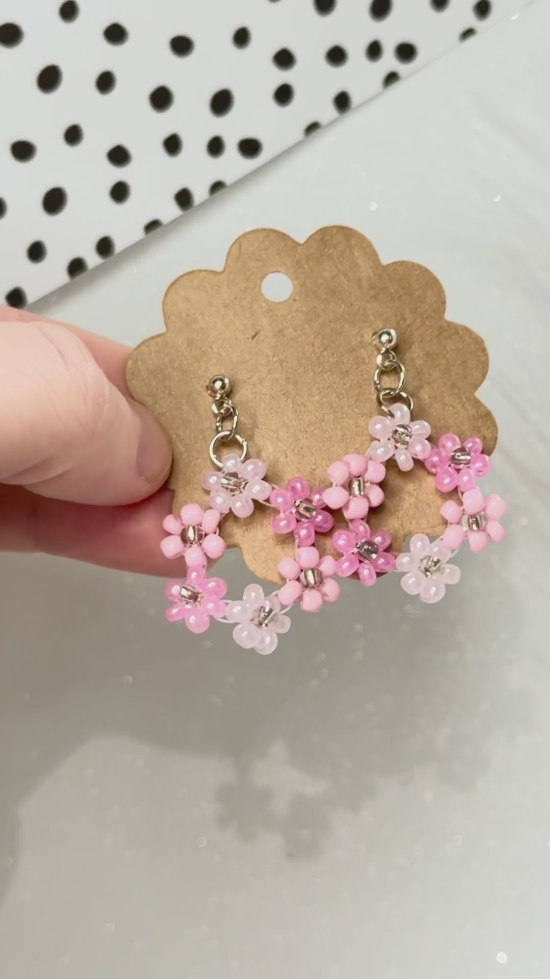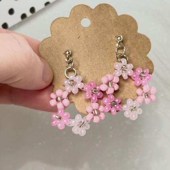 Pink Beaded Flower Hoop Earrings – Handmade Floral Jewelry